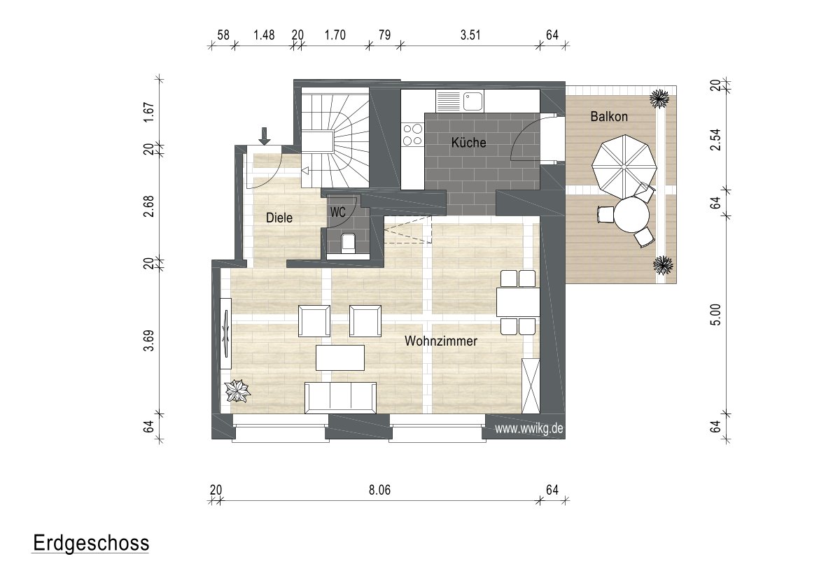 Die von uns angebotene Wohnung befindet sich direkt im Erdgeschoss.