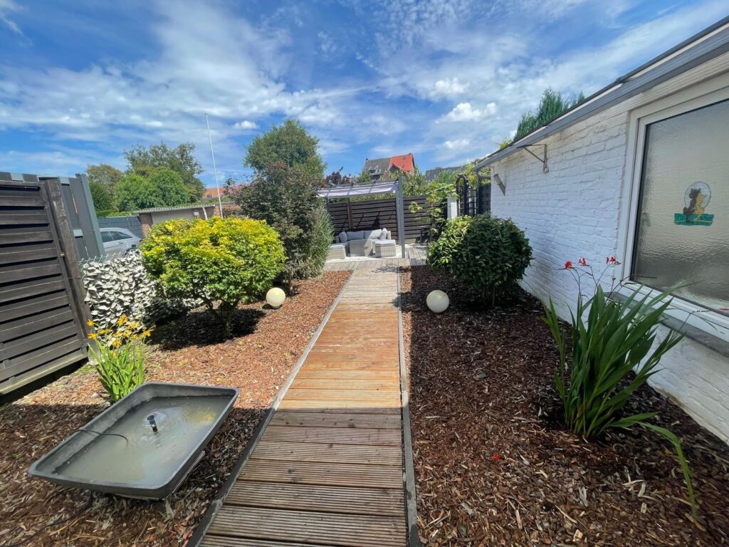 Ergänzt wurden die Modernisierung durch eine großzügige Terrassenüberdachung und die Neugestaltung des Gartens, der absolut zum Verweilen und Erholen einlädt. Irgendwie wirkt der Garten wie ein Park im Bonsai-Format, wir sind wirklich total begeistert von diesem Flecken Grün, was soviel Kraft und Sonne und mehr (leider mit h) vermittelt. Hier können Sie dem Alltag trotzen und Ihr Leben in vollen Zügen genießen – herrlich.