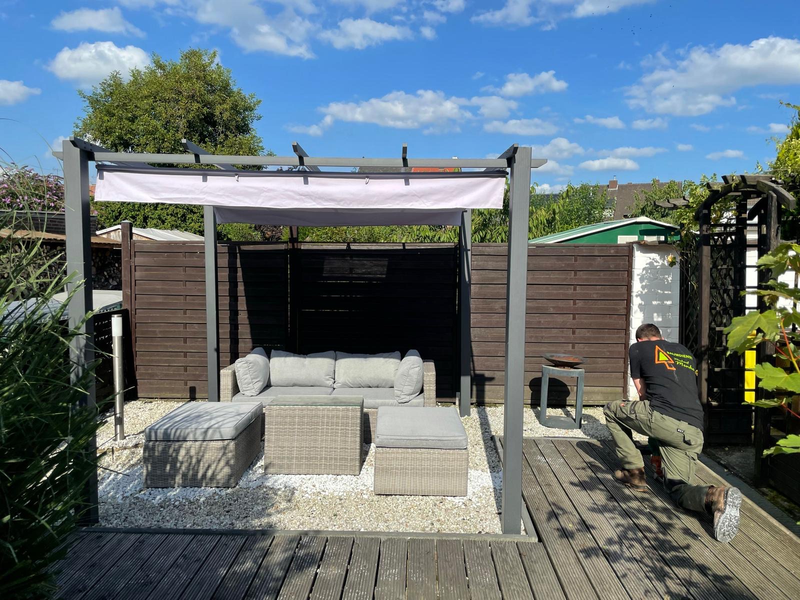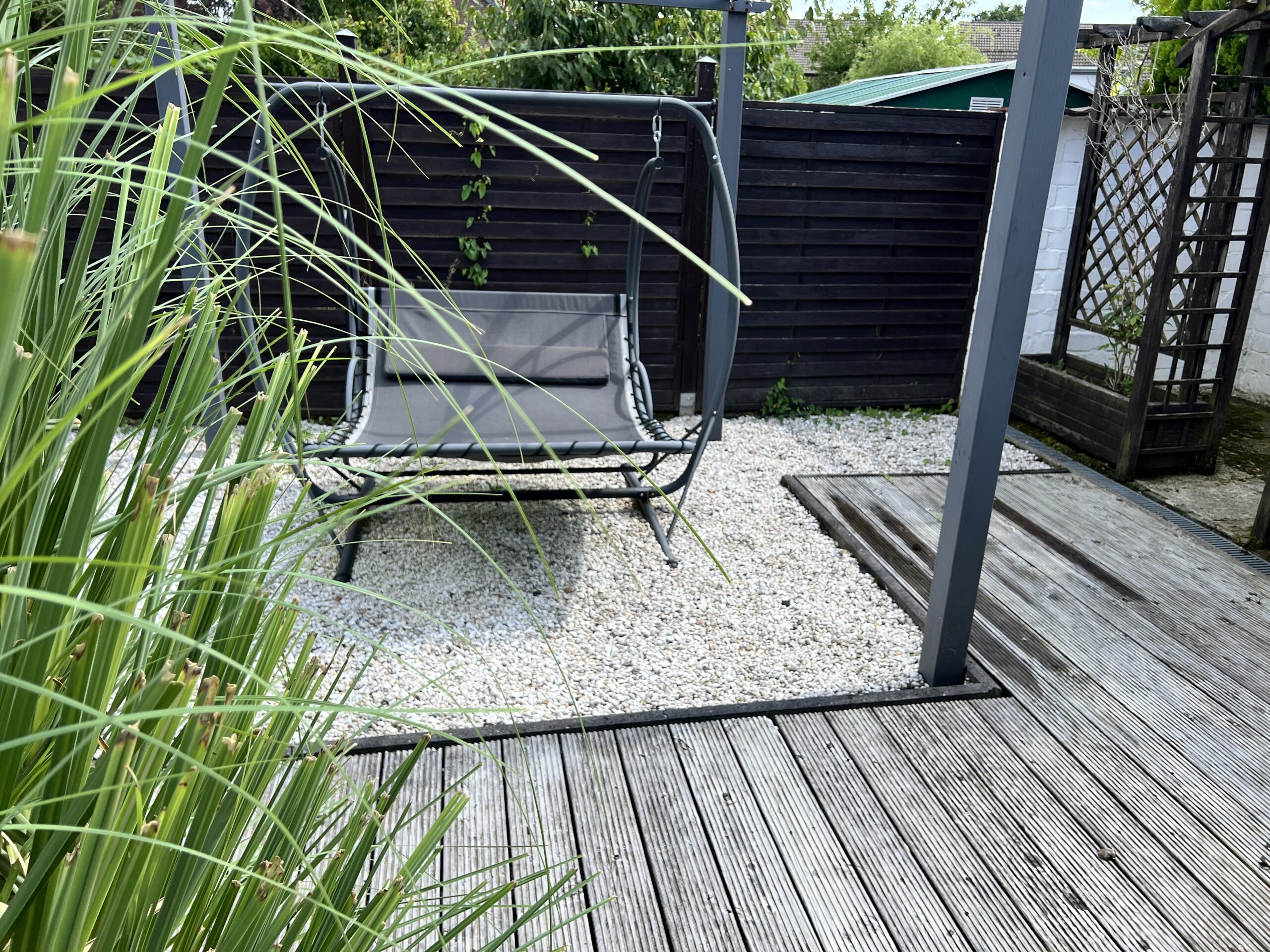 Ergänzt wurden die Modernisierung durch eine großzügige Terrassenüberdachung und die Neugestaltung des Gartens, der absolut zum Verweilen und Erholen einlädt. Irgendwie wirkt der Garten wie ein Park im Bonsai-Format, wir sind wirklich total begeistert von diesem Flecken Grün, was soviel Kraft und Sonne und mehr (leider mit h) vermittelt. Hier können Sie dem Alltag trotzen und Ihr Leben in vollen Zügen genießen – herrlich.